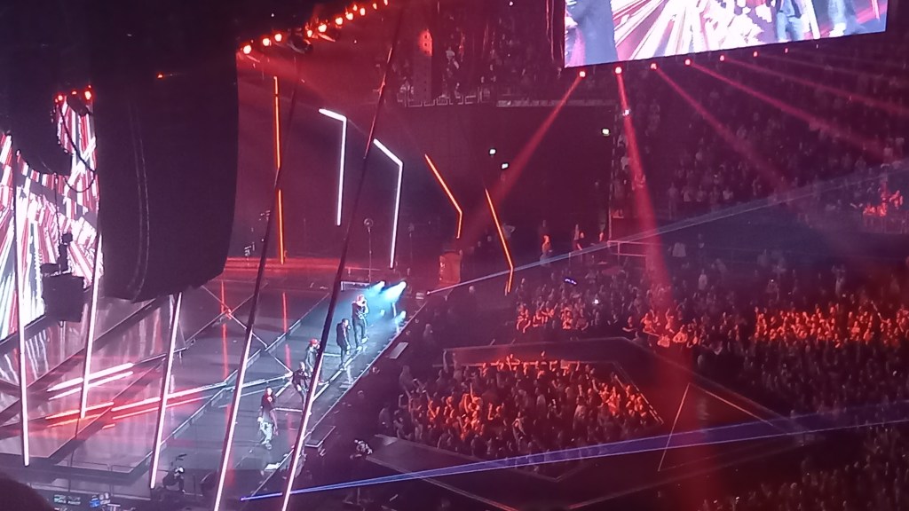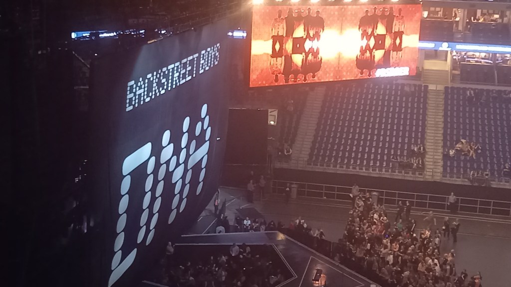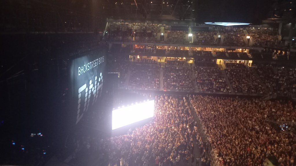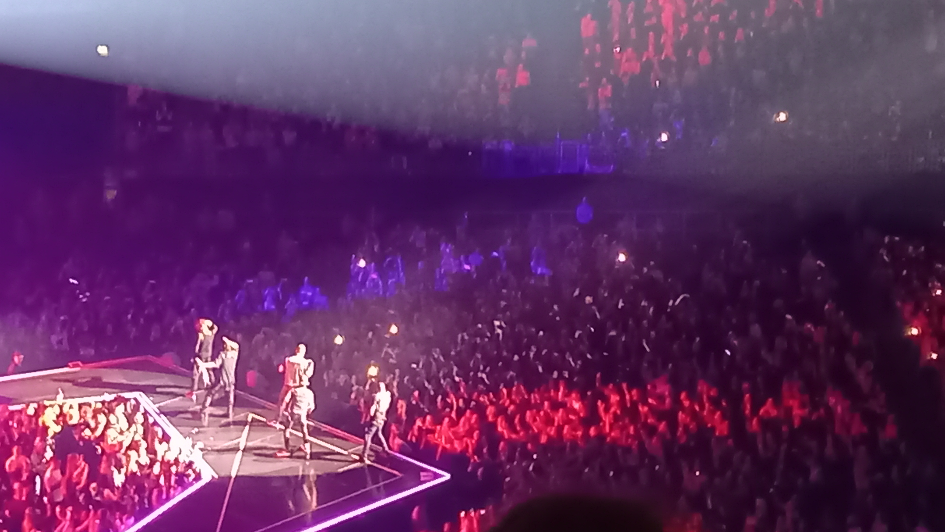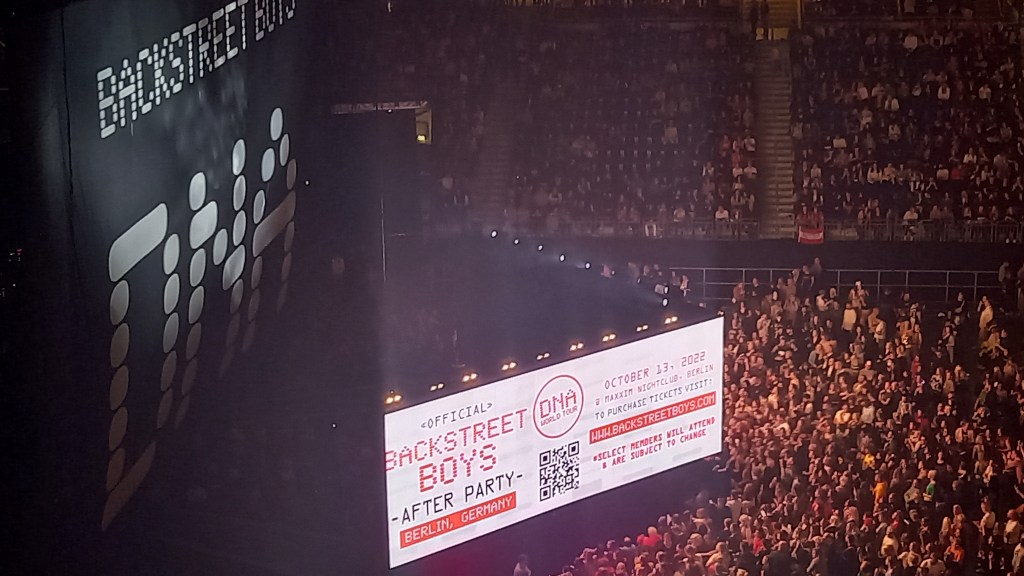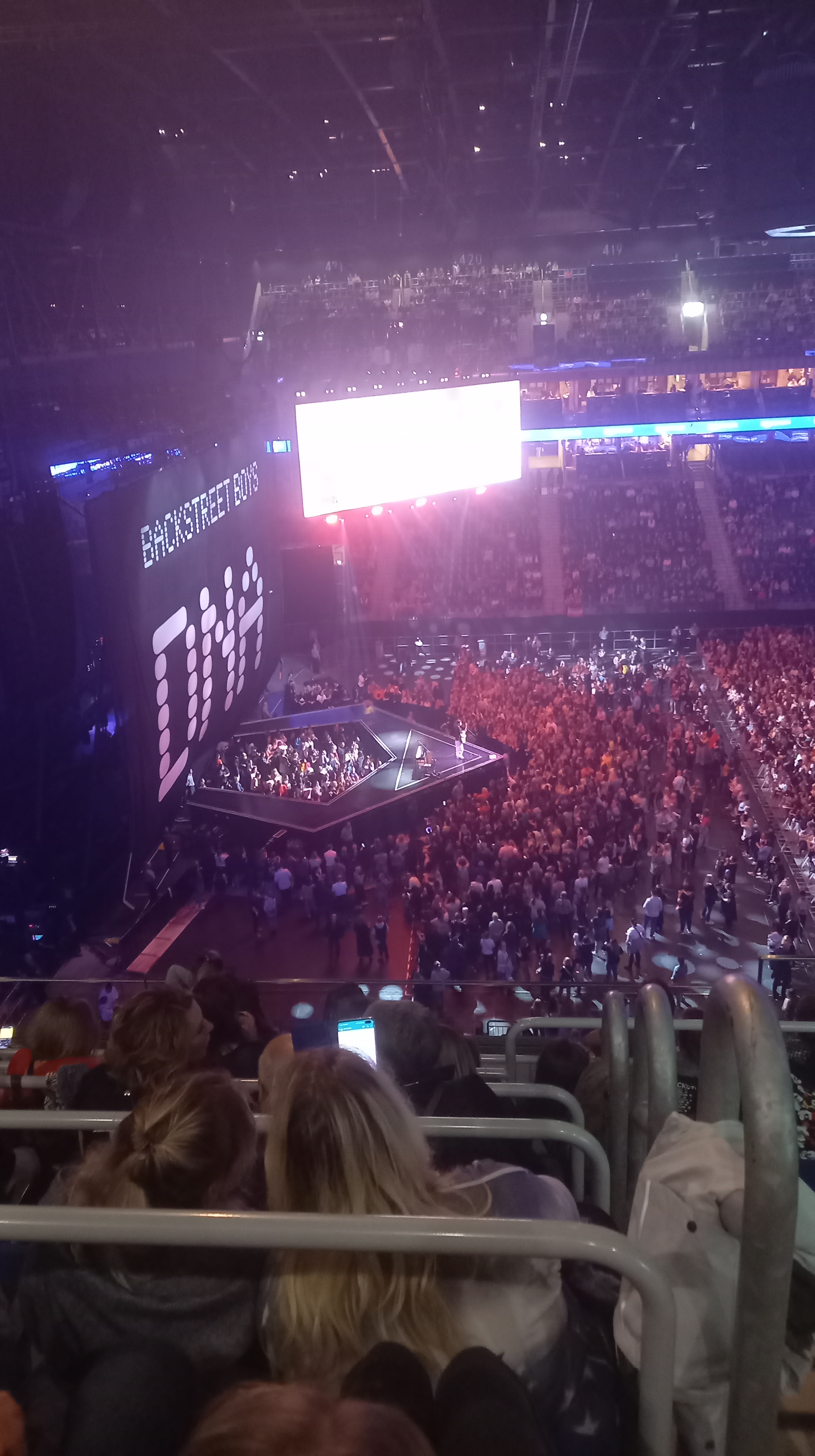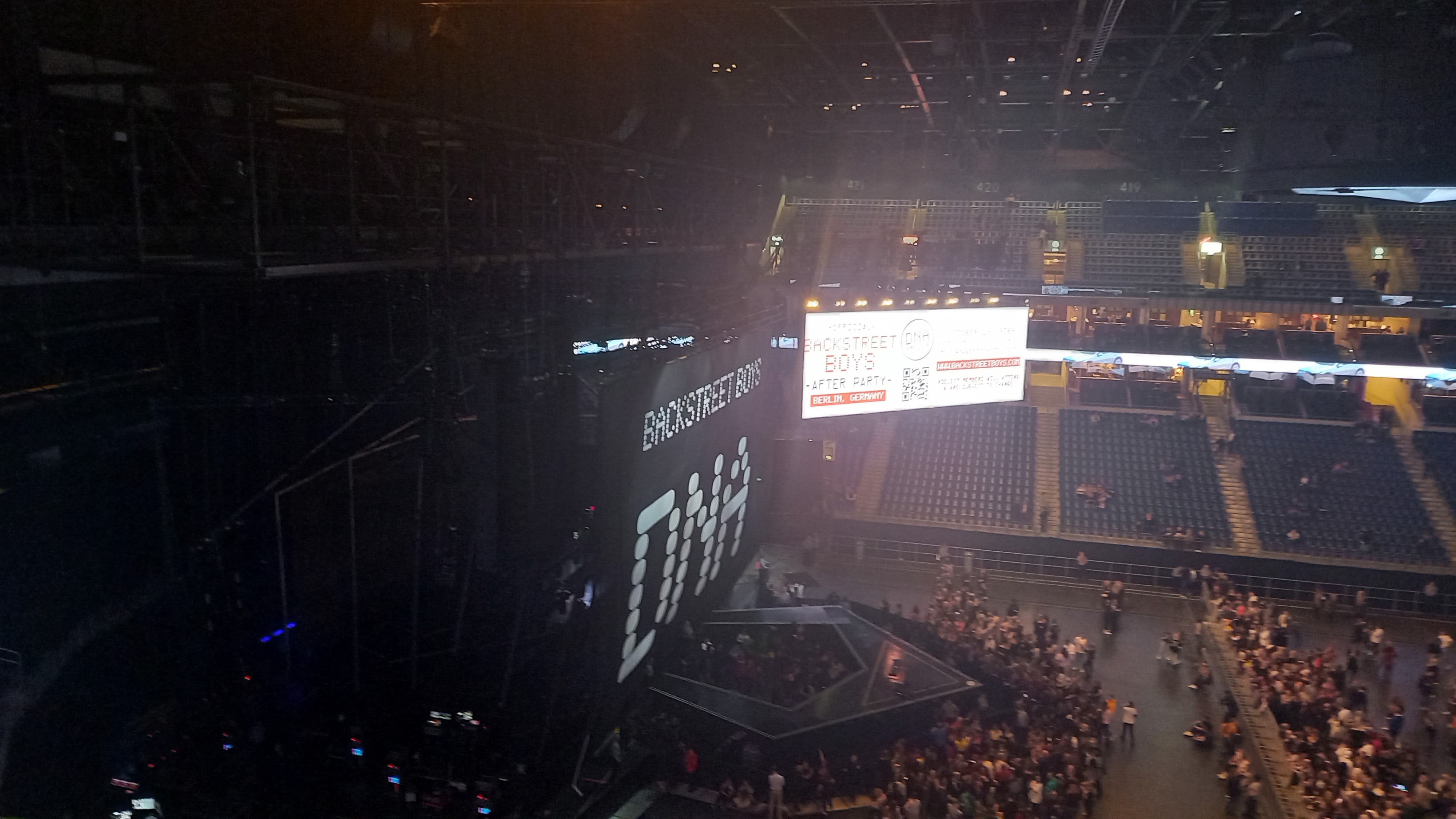 Mi-octobre, je me suis rendue à la Mercedes-Benz-Arena pour autre chose qu’un match de hockey. En effet, les Backstreet Boys avaient deux concerts chez nous ! J’étais une très grande fan à l’adolescence, mon tout premier concert c’était eux au Galaxy d’Amnéville près de Metz en 1998. J’ai un peu perdu de vue tout cela après leur quatrième album au début des années 2000. Il y a quelques années, j’avais vu qu’ils passaient à Berlin, mais le prix des places m’avait refroidie. Il y environ deux ans, j’ai par hasard décidé de ré-écouter les albums… et j’ai vu qu’ils en avaient sorti pas mal d’autres depuis, j’ai tout écouté puis acheté et l’engouement pour leur musique est revenu. Alors, quand j’ai vu qu’ils revenaient à Berlin pour leur nouvelle tournée, je me suis précipitée pour prendre une place. Le temps de voir avec une amie si elle voulait venir (finalement non), le concert était presque complet, mais ils ont décidé de rajouter un show ! Je me suis donc pris une place pour le deuxième jour. Ma place habituelle n’existant pas pour de nombreux événements sans glace apparente, dont les concerts, j’ai dû me rabattre sur autre chose. J’ai longuement hésité au vu des prix et j’ai opté pour une place tout en haut sur le côté de la scène.