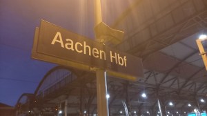 Me voici en route pour une petite escapade de l’autre côté du pays : Aachen, ou Aix-la-Chapelle en français. Il y a quelque temps, une amie qui habite maintenant à Hambourg m’a proposé qu’on se fasse un petit séjour et nous nous sommes rapidement mises d’accord sur Aachen. Cela faisait un moment que je voulais y aller, et comme cette année de voyage est sous le signe du train, j’ai tout de suite pris mes billets, d’autant plus que j’avais également acheté peu avant une carte de réduction pour la première classe avec la Deutsche Bahn. Pour une centaine d’euros par an, j’ai une réduction de 25 % sur tous les voyages en première. Oui, ça peut paraître du luxe, mais, souvent, la différence est pas énorme et y’a plus de place, moins de familles avec des enfants qui pleurent, le service à la place pour le restaurant de bord, plus de confort, une meilleure connexion Internet…