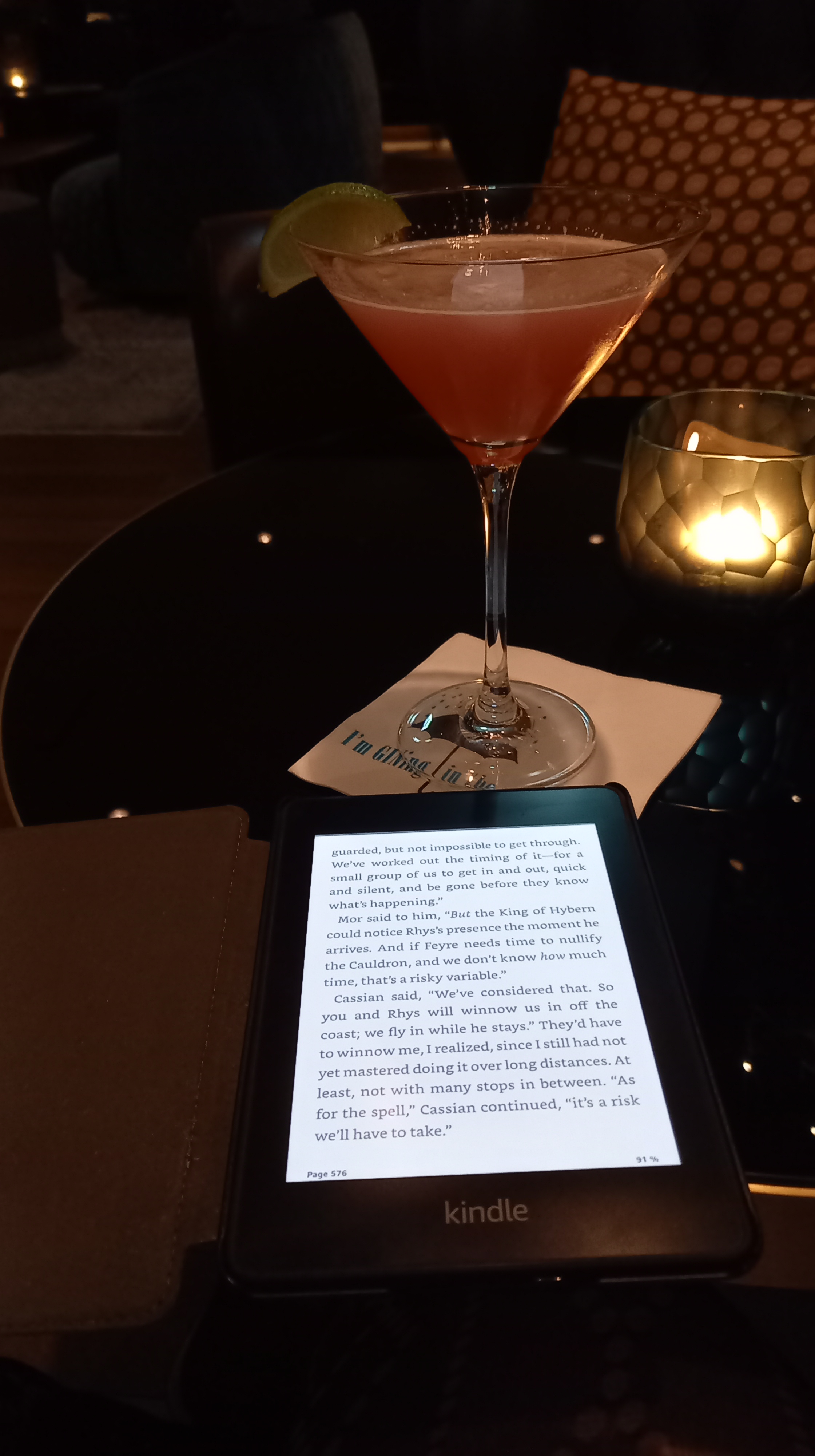 Hier soir, le restaurant où je voulais aller était exceptionnellement fermé, j’ai tourné dans le coin une vingtaine de minutes, ne trouvant rien d’ouvert intéressant à mon goût. Du coup, je suis retournée au Burgerheart à côté de l’hôtel. Ensuite, un Cosmo au bar de l’hôtel en bouquinant, puis au lit. Ce matin, je me suis levée un peu tard, il pleuvait des cordes, donc après le petit-déjeuner, j’ai traîné dans ma chambre, j’ai même pu rester une heure de plus que prévu. Et comme le temps reste humide, je vais rester au bar de l’hôtel à bouquiner en attendant l’heure d’aller à la gare un peu avant 16h.