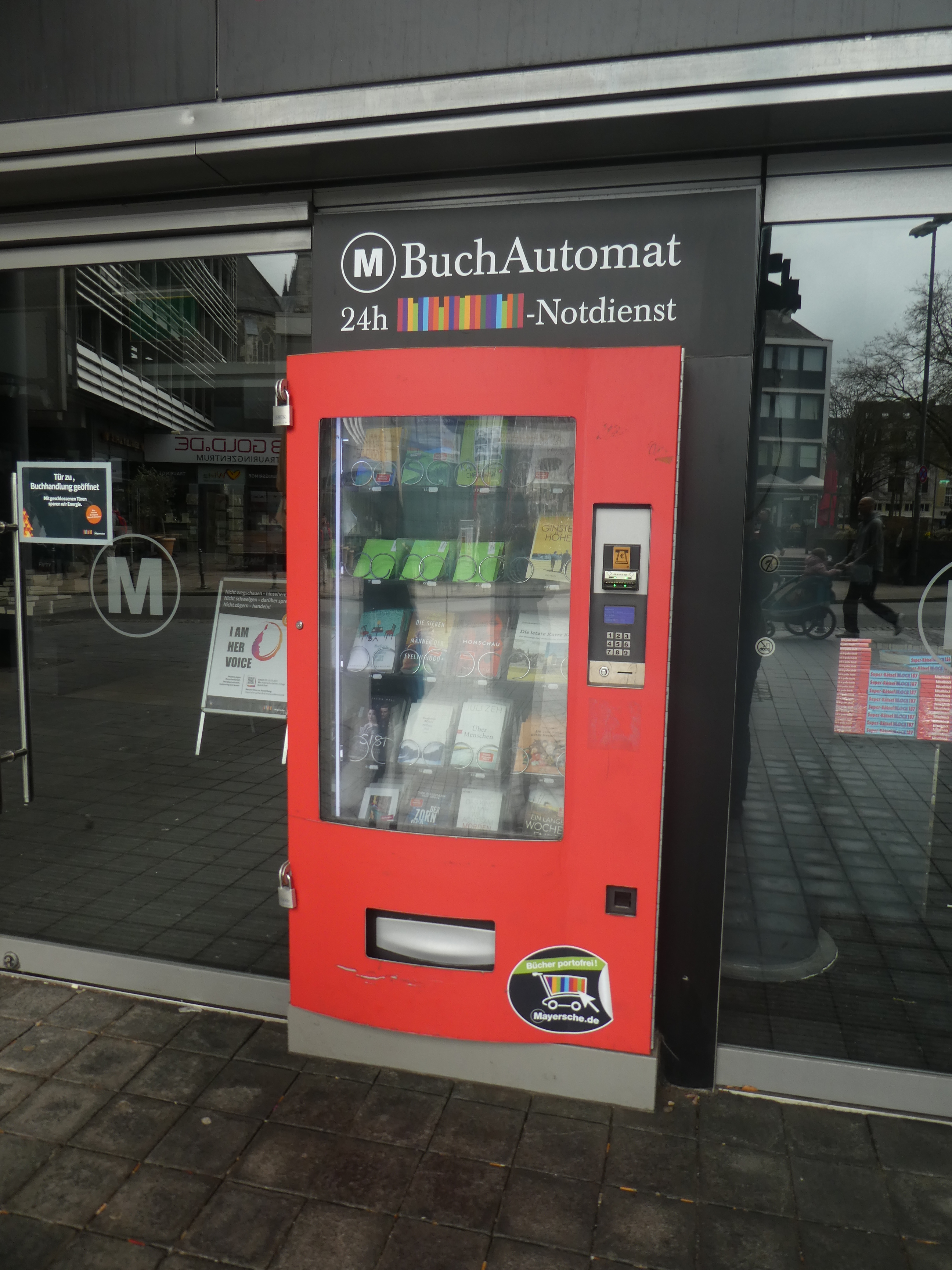 Après cela, nous sommes allées dans la grande librairie Mayersche. Sur quatre niveaux, des livres, des livres, des livres. Y’a aussi de quoi s’asseoir, des cafés, un coin sympa pour les enfants. On y a passé un long moment, par moments, je me suis assise dans un fauteuil confortable et je suis repartie avec le livre Dune en VO. Je n’ai pas vu les films et j’en entends toujours parler en bien, alors…