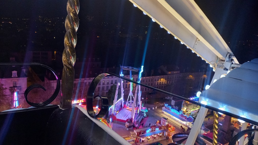 Je reviens d’un séjour dans ma Lorraine natale et j’ai passé une petite soirée à Nancy avec une amie. J’en ai profité pour me balader un peu, sans manquer un tour sur la foire et notamment dans la grande roue.