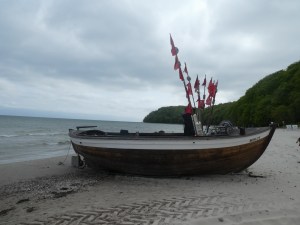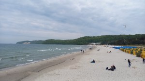 Ce matin, après un bon petit-déjeuner, nous nous sommes mises en route. Premier arrêt près de la jetée pour acheter nos billets de bateau. Ensuite, nous sommes descendues sur la plage pour nous promener dans la direction vers Sellin, entre sable, cailloux et forêt. Nous sommes allées jusqu’à l’entrée du parc naturel de Granitz, nous y aventurant un peu sur la partie en bord de mer. Il est possible de monter dans les hauteurs boisées pour suivre divers chemins de randonnée.