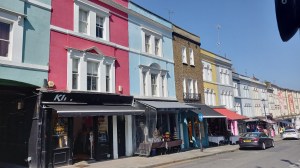 Hier, nous avons fait une journée tranquille. C’était le jour du retour pour ma sœur. Le matin, nous sommes allées nous promener du côté de Notting Hill, notamment sur Portobello Road, avec ses maisons colorées. Il y a pas mal de petites boutiques et de cafés, des stands de marché aux puces aussi, ça fait une belle petite balade. Et hier encore, le temps était clément : ciel bleu, soleil, chaleur.