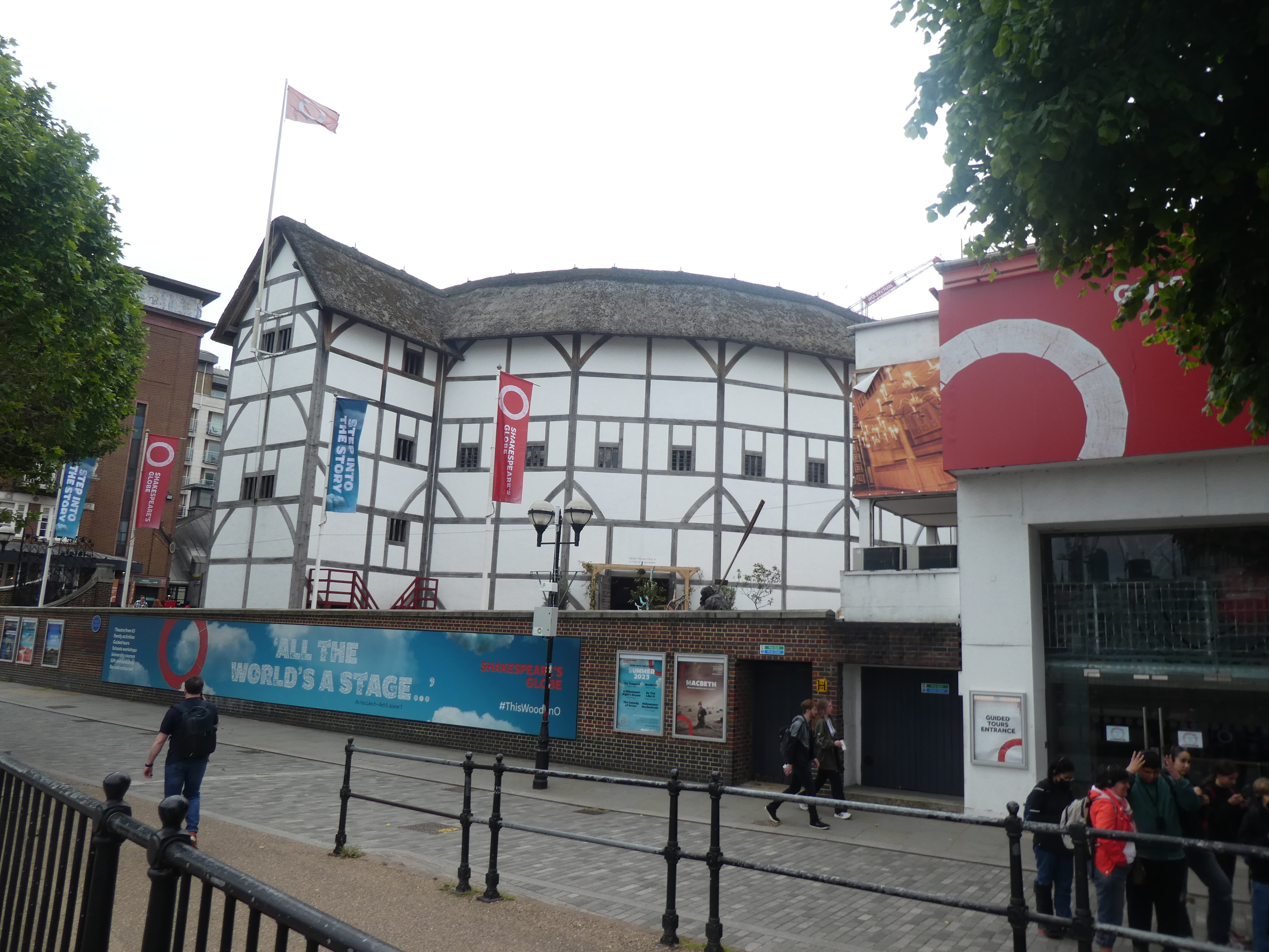 Hier matin, nous nous sommes mises en route assez tôt. Premier arrêt : St Paul’s Cathedral. Je voulais éventuellement la visiter, mais elle était fermée pour cause de tournage. À chaque fois que je suis là, je l’imagine bien sûr entourée de Cybermen. Nous avons donc traversé le pont Millenium Bridge et avons d’abord visité la boutique du Globe Theater. Cette réplique du théâtre du Barde a été construite à la fin des années 1990, l’original ayant brûlé lors du Grand Incendie de 1666. Forcément, presque tout tourne autour de Shakespeare. J’ai fait brûler la carte bancaire : collier, boucles d’oreille, livre regroupant les sonnets, carnet et un livre reprenant Retour vers le futur écrit dans le style de Shakespeare.
