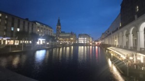 Vers 19h, je suis allée prendre le métro jusqu’à Jungfernstieg, près de l’hôtel de ville, dans le centre, c’est un coin bien plus chouette. À l’avenir, si je reviens à Hambourg, je prendrai un hôtel plus par là-bas, enfin bref. J’ai fait un petit tour vite fait et je suis tombée sur un Block House, une chaîne allemande de resto de viande pas trop mal. Alors, allez hop. Y’avait un peu d’attente pour une table, mais ça valait le coup, un bon steak bien saignant avec un gratin de pommes de terre et du pain à l’ail. Sur ce, je suis revenue à l’hôtel, ma copine arrive vers 23h pour prendre un verre. Je vais d’abord un peu traîner dans ma chambre, puis j’irai m’installer au bar.