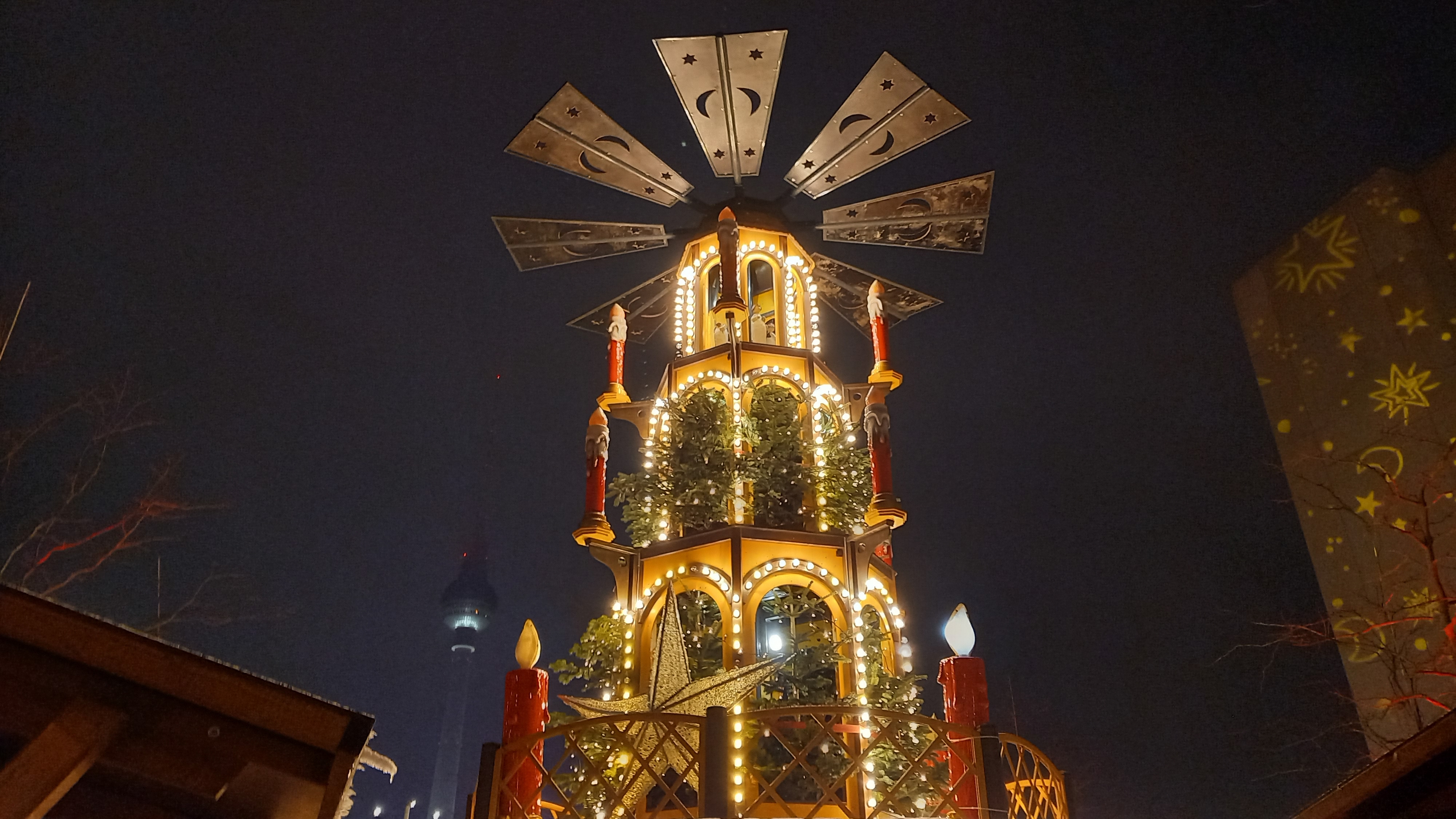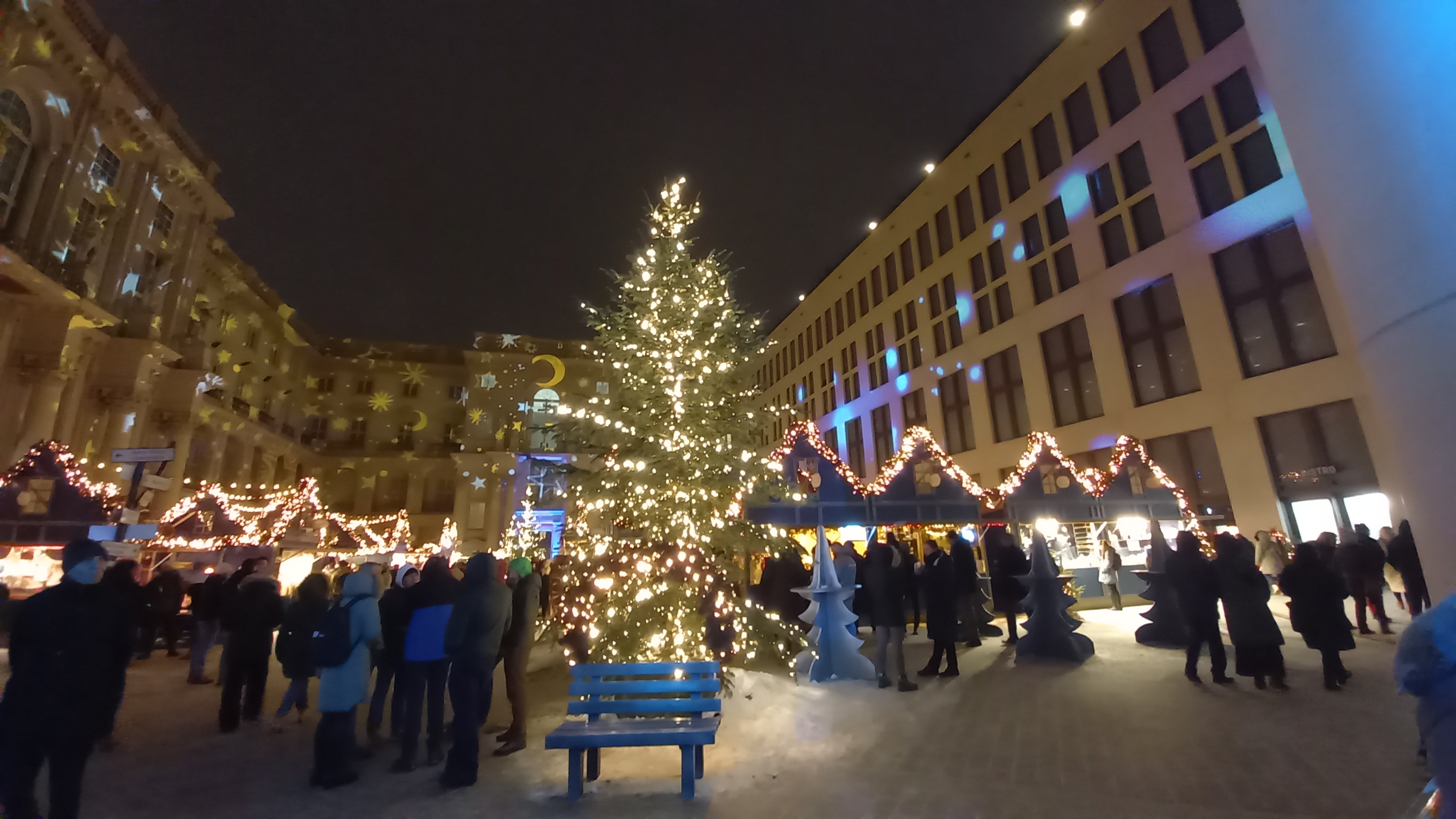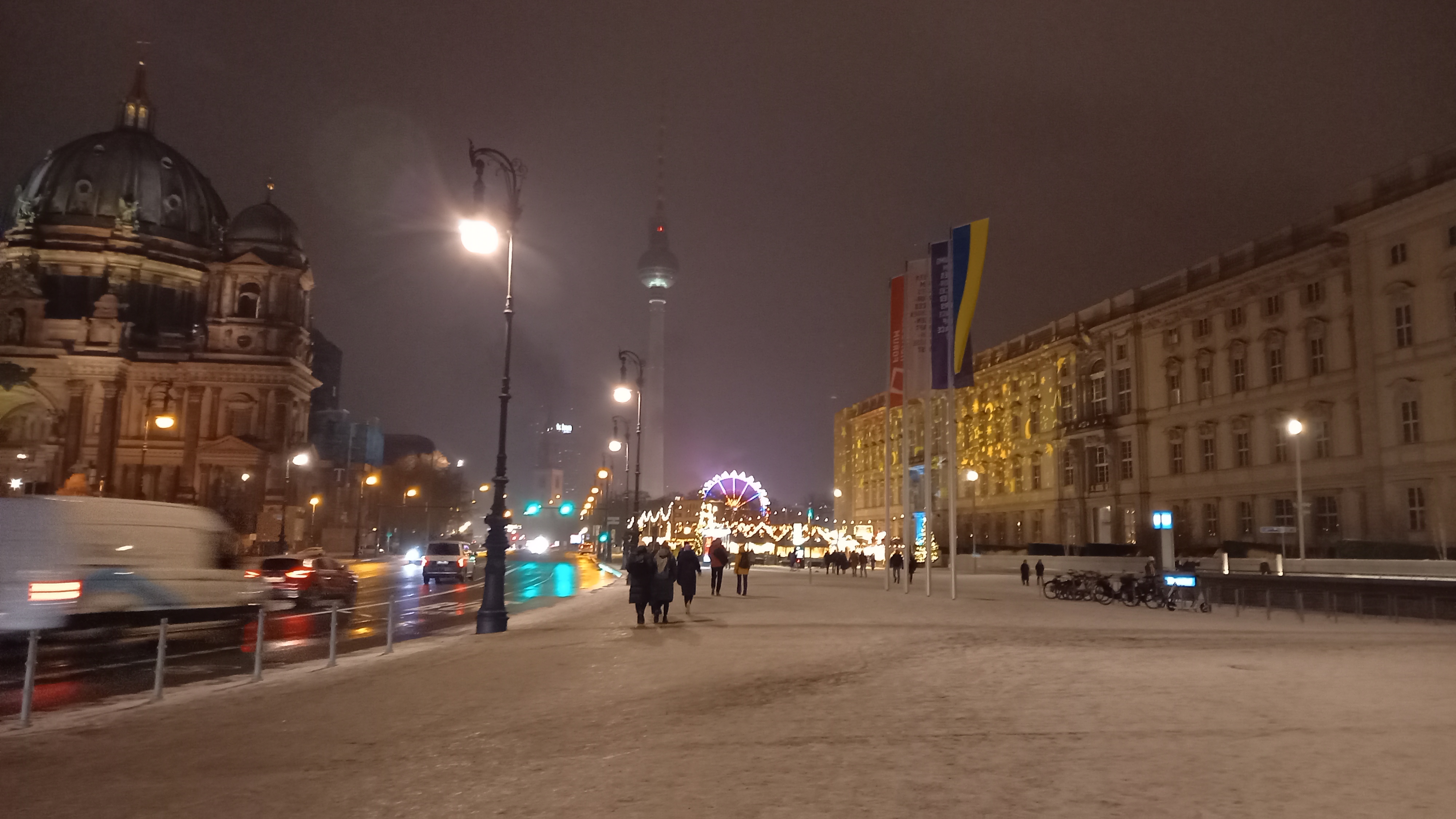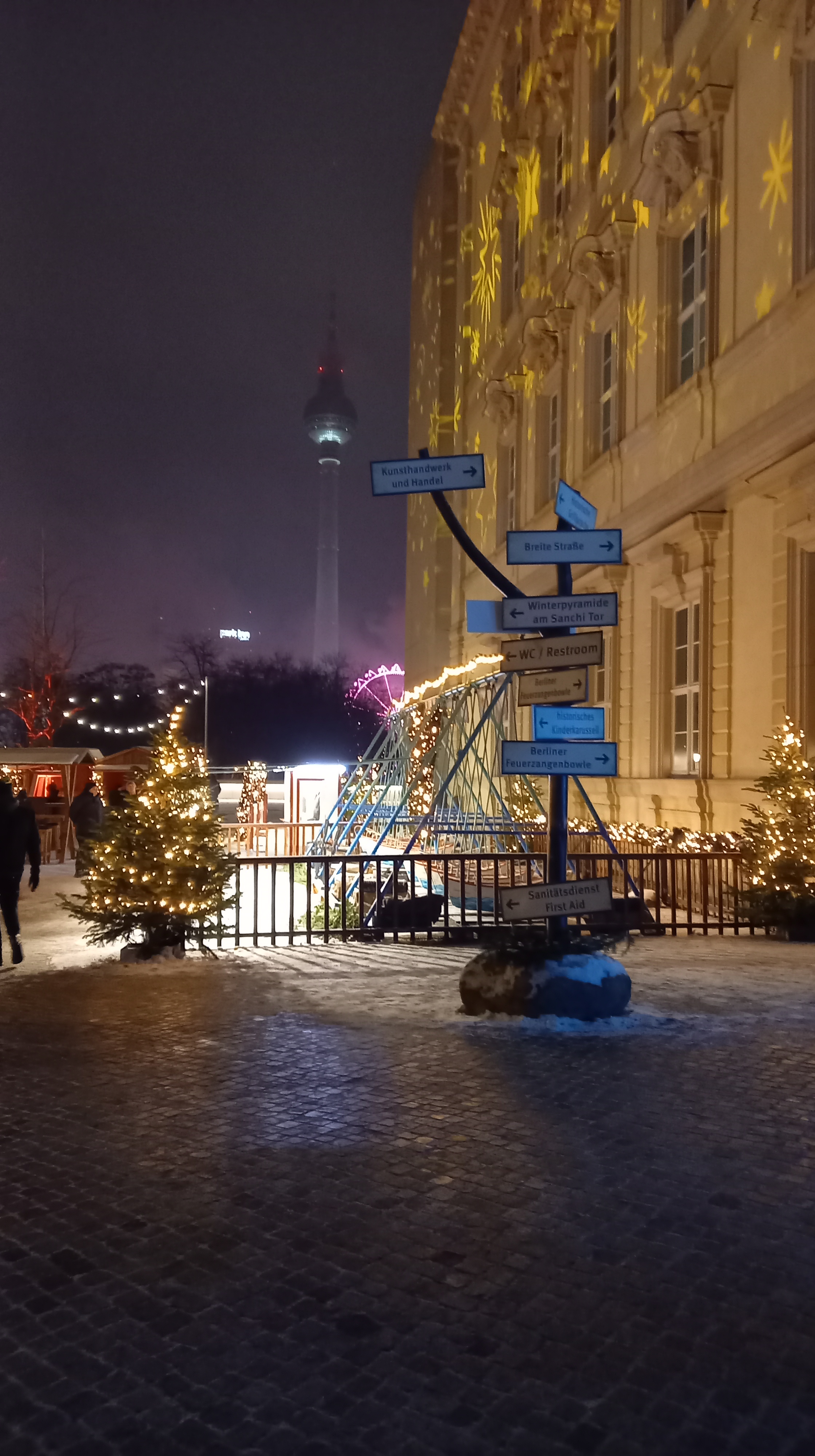 La saison des marchés de Noël bat son plein et j’en ai déjà un peu profité. Cette année, il y a un petit nouveau : le Wintermarkt am Humboldt Forum, Wintermarkt pour marché d’hiver. Situé au forum Humboldt et au château, entre Alexander Platz et l’opéra, face à l’île aux musées, la grande place devant le château et la cour intérieure vous accueillent dans une atmosphère féerique. J’ai eu la chance de le voir sous la neige. Au programme, lumières dansantes sur les façades, illuminations pour éclairer la morosité de l’hiver, cabanons pour admirer, se réchauffer, se régaler. Un marché de Noël assez classique dans un cadre magnifique.