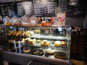 Là, j’ai pris à gauche jusqu’à l’entrée du grand parc Volkspark Friedrichshain. J’ai passé le terrain de beach volley, puis j’ai erré dans le parc, toujours aussi joli, avec ses petits étangs, ses collines boisées, ses grandes pelouses et bien plus (il y a notamment un cinéma en plein-air dans le parc). Au fil de ma balade, j’ai décidé de monter les marches menant au sommet d’une colline et en chemin j’ai croisé un écureuil se régalant de graines laissées sur la rambarde de pierre. Je me suis arrêtée pour l’observer, mais même en essayant de garder mes distances, il a fui quand je me suis rapprochée en continuant mon chemin.