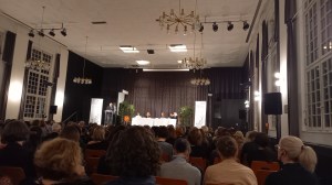 La session de l’après-midi a été tout aussi enrichissante et intéressante que le reste. Les interprètes ont encore une fois eu le droit à un tonnerre d’applaudissements, bien mérité. D’ailleurs, plusieurs intervenants du monde du livre non-traducteurs ont noté que c’était la première fois qu’ils se retrouvaient face à tant de traducteurs (littéraires) à la fois et tenaient à nous remercier, car, sans nous, il y a tant de merveilleux livres qu’ils ne pourraient pas lire. Le chef du salon du livre de Francfort a même dit que sans nous, il n’aurait pas de travail. Enfin bref…