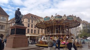 Samedi matin, j’ai donc pu « faire la grasse matinée » jusque 8h30… Je devais quitter la chambre à 11h, du coup entre le petit-déjeuner, la douche et le bouclage de la valise, je n’avais pas énormément de temps. Une fois mes bagages déposés à la réception, je suis allée me balader en ville, notamment la place Kléber et la superbe cathédrale. Je n’ai pas visité l’intérieur cette fois. Ensuite, j’ai pris le chemin de l’hôtel de ville pour le dernier événement de la conférence.