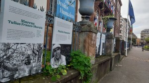 Anja Kapunkt, une traductrice et photographe, a fait des portraits de traducteurs et certains sont exposés jusque fin octobre sur les grilles de l’hôtel de ville de Strasbourg. Il y avait donc une rencontre et discussion avec l’artiste allemande. Je suis arrivée avec environ vingt minutes d’avance et il n’y avait personne. Je me suis demandé si ce n’était pas à l’intérieur du coup, quand j’ai entendu quelqu’un à côté de moi téléphoner et demander la même chose, c’était le photographe pour l’événement, pas celui qui présente (car là, c’est une elle), un autre. Et donc, apparemment c’était bien dehors. Quelques minutes avant l’heure prévue, j’ai vu quelques visages familiers, OK, super. Puis tout le monde était là, enfin pas énormément de gens, loin des trois cents des premiers jours. C’était très intéressant. Au fur et à mesure, les participants partaient, j’ai pu m’intégrer plus ou moins aux conversations. Alors qu’on était plus qu’une dizaine, certains ont proposé de déjeuner ensemble et je me suis jointe à eux… ou plutôt à elles.