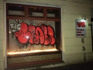 Pendant 90 minutes, le/la guide vous emmène sur les différents étages et dans les différentes pièces à la rencontre des œuvres et des quelques restes de l’histoire imprégnant encore les murs. On vous explique l’idée de l’artiste derrière l’œuvre, le message qu’il/elle voulait passer, des détails divers, on vous raconte également l’histoire du bâtiment. On se moque parfois de l’art moderne, il y avait là quelques œuvres qui m’ont laissée perplexe, certes, mais d’autres étaient bien plus poignantes, intéressantes, jolies,… Et à la fin, on a pu se mettre à la place d’un artiste en utilisant ses tampons pour « copier » son œuvre, bon ben je suis tellement douée que j’avais plus d’encre sur les mains que sur la feuille…