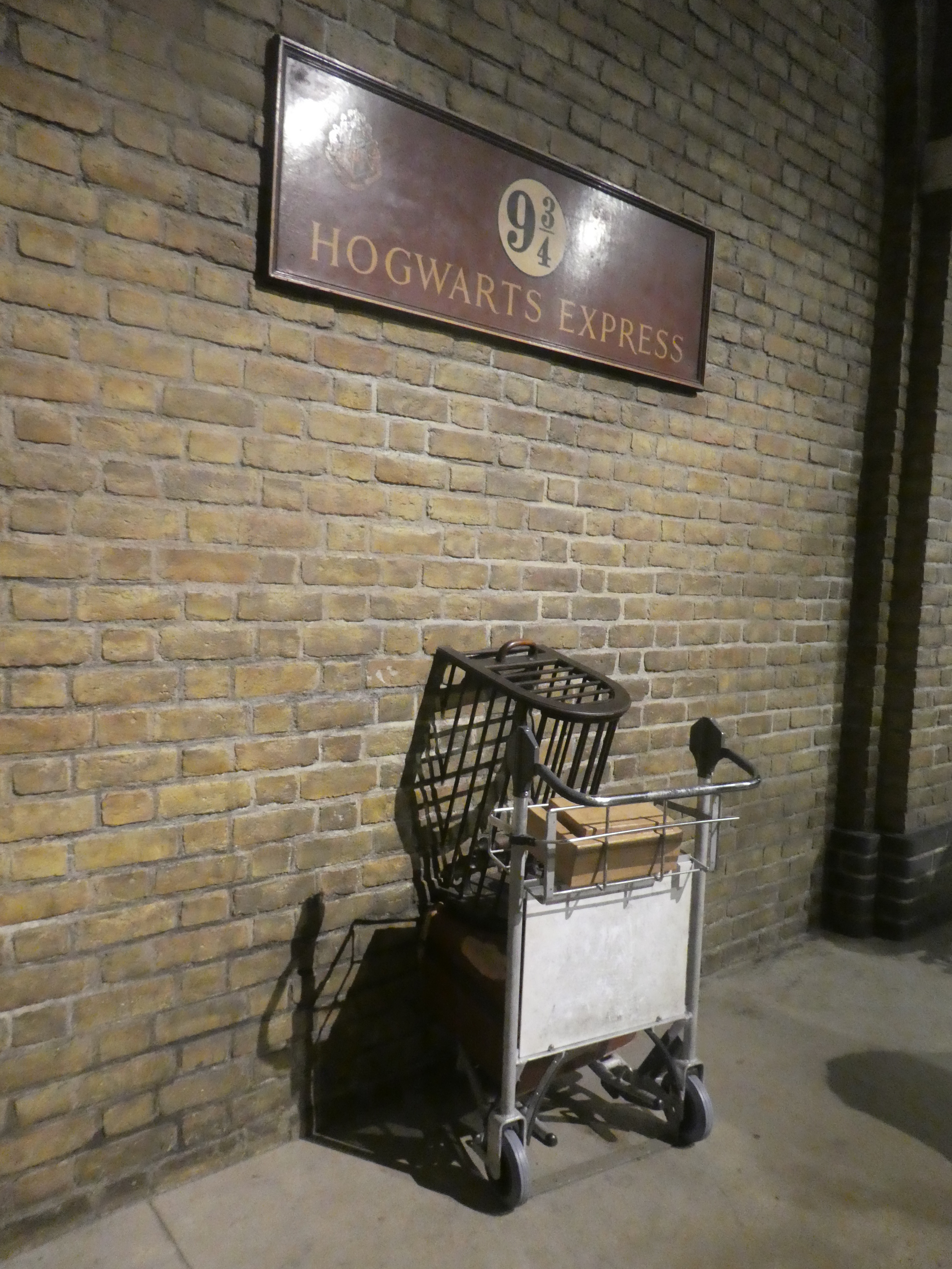 tout voir. Lors des moments à bord, il nous montrait des scènes sur DVD des endroits que l’on allait voir, il nous a aussi raconté plein d’anecdotes et secrets de tournage, super intéressant. On a fini à King’s Cross devant le magasin Platform 9 ¾ qui a un chariot à moitié enfoncé dans le mur… et une file d’attente immense pour prendre des photos… ou pour entrer dans la boutique. Le guide nous a dit que le tout était rangé la nuit car il y a eu des vols… Aussi des gens vont là où est censé être le vrai quai 9 ¾ et essaient de passer…. Résultat, pas mal de blessés, du coup ils ont installé une poubelle devant. C’était sympa, mais je trouve qu’on passe vraiment beaucoup de temps dans le bus, je pensais voir plus de choses.